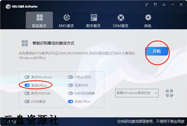4、打开激活工具文件夹,运行keygen 2.exe,选中激活Office,点击开始;