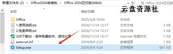 1、打开Office 2024文件夹,以管理员身份运行Setup.exe;